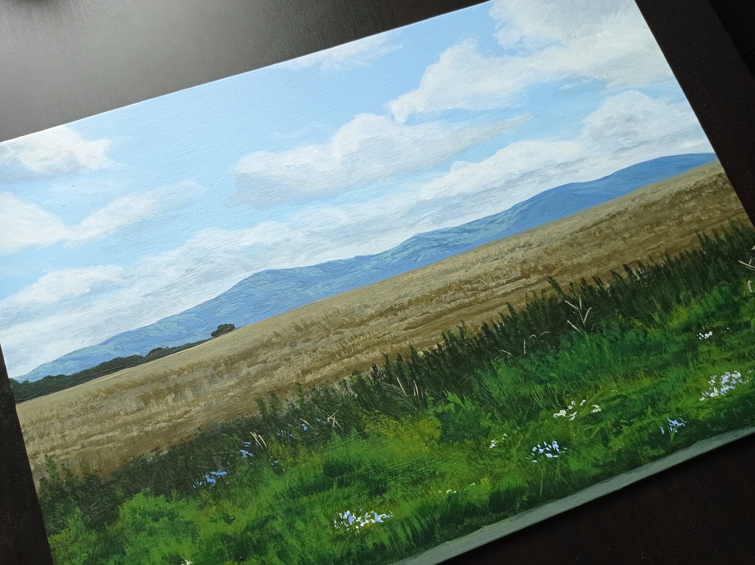 Vy vybíráte předlohu, já maluji #2 – obraz “Pohled na hory přes pole”
